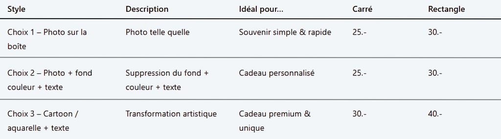 Personnalisez votre boîte avec vos photos et textes pour un cadeau unique et mémorable.